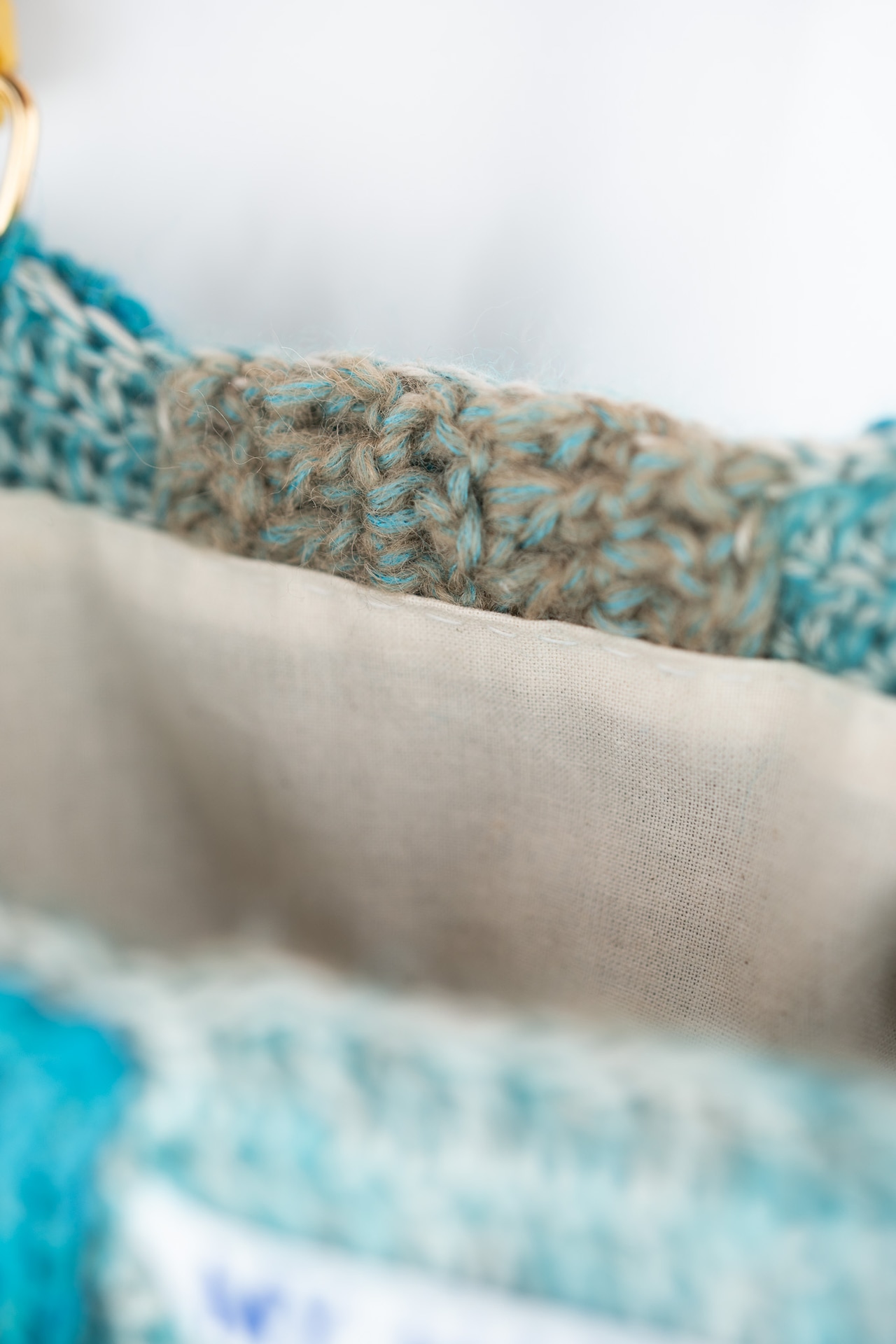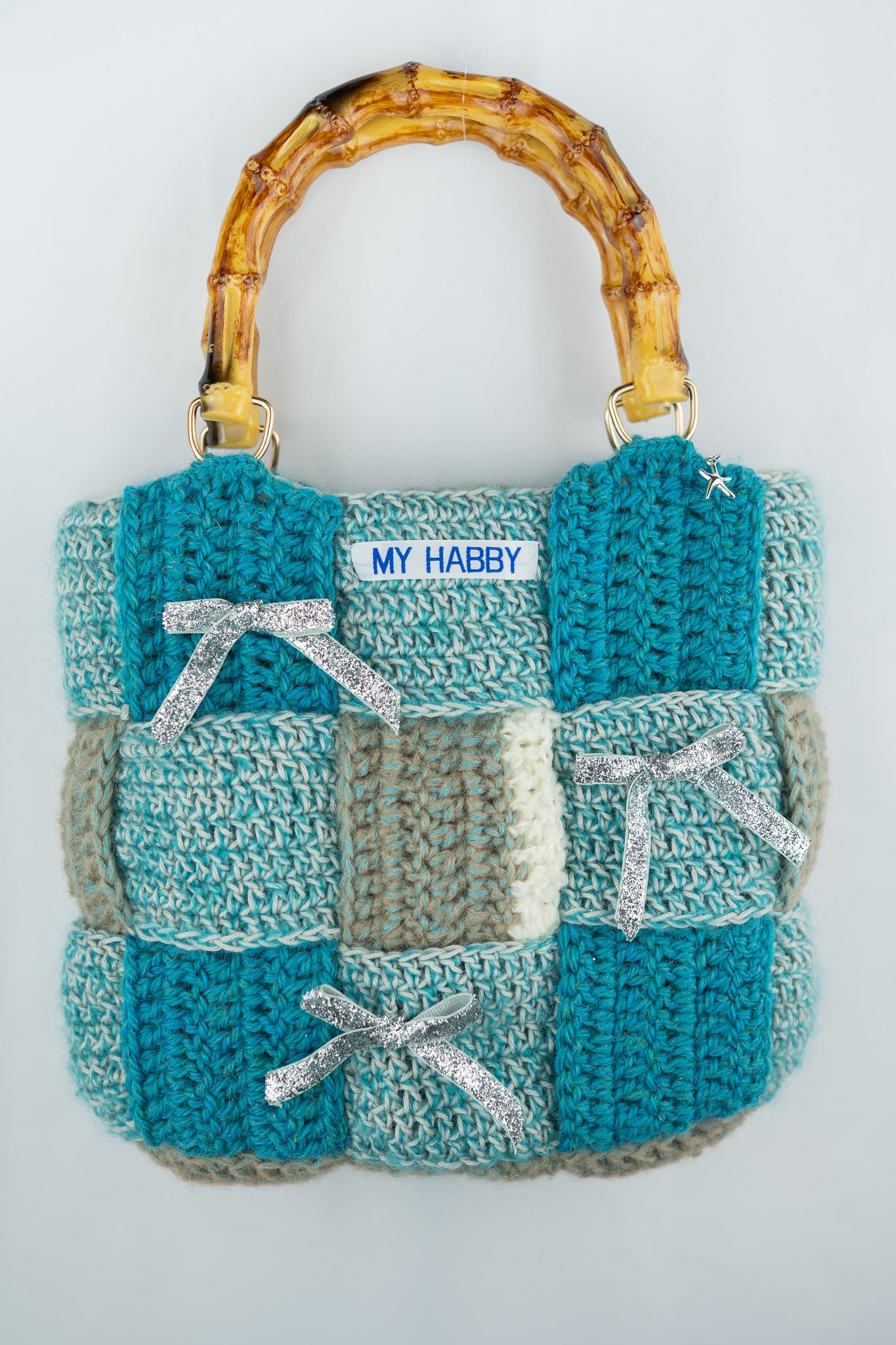 ターコイズブルーの湖でどこでも山のリゾートに変えちゃうかもしれないハンドバッグ。